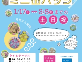 第113回企画展「世界遺産 縄文」に関連したワークショップを実施します。 【縄文ミニ缶バッジ】 遮光器土偶・クマ形土製品・土製耳飾りをモチーフとした三種類のイラストからひとつを選び、好きな色をぬって…